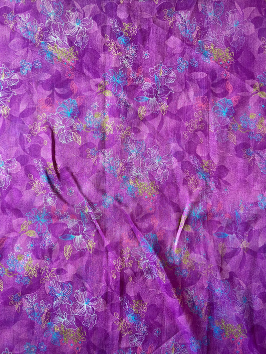 Lila Chiffonstoff mit Blumenmuster