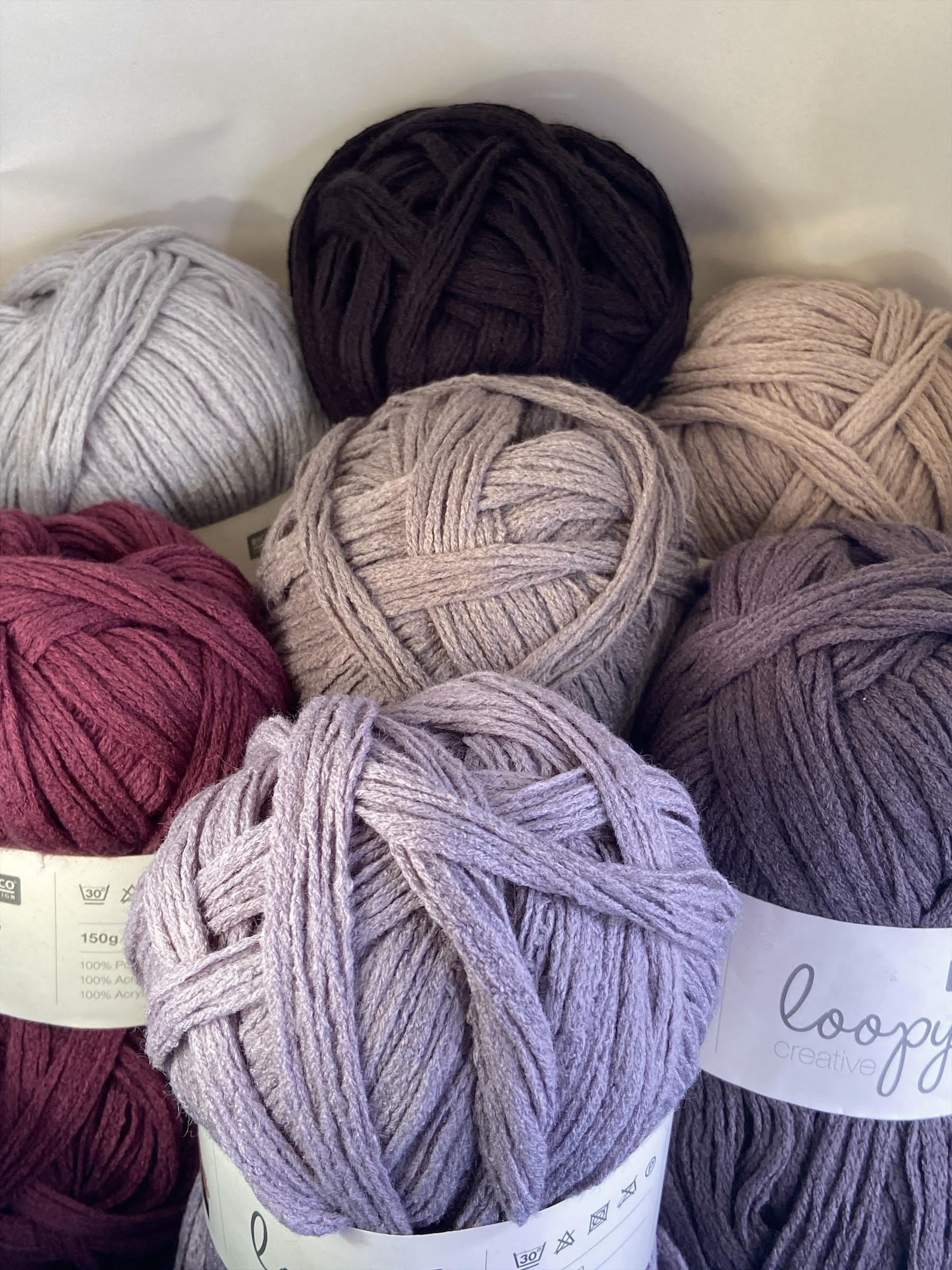 Fil 100 % acrylique adapté aux travaux à volants (piqûre à travers le bord) ou pour des projets tels que des paniers de rangement tricotés ou des coussins épais.