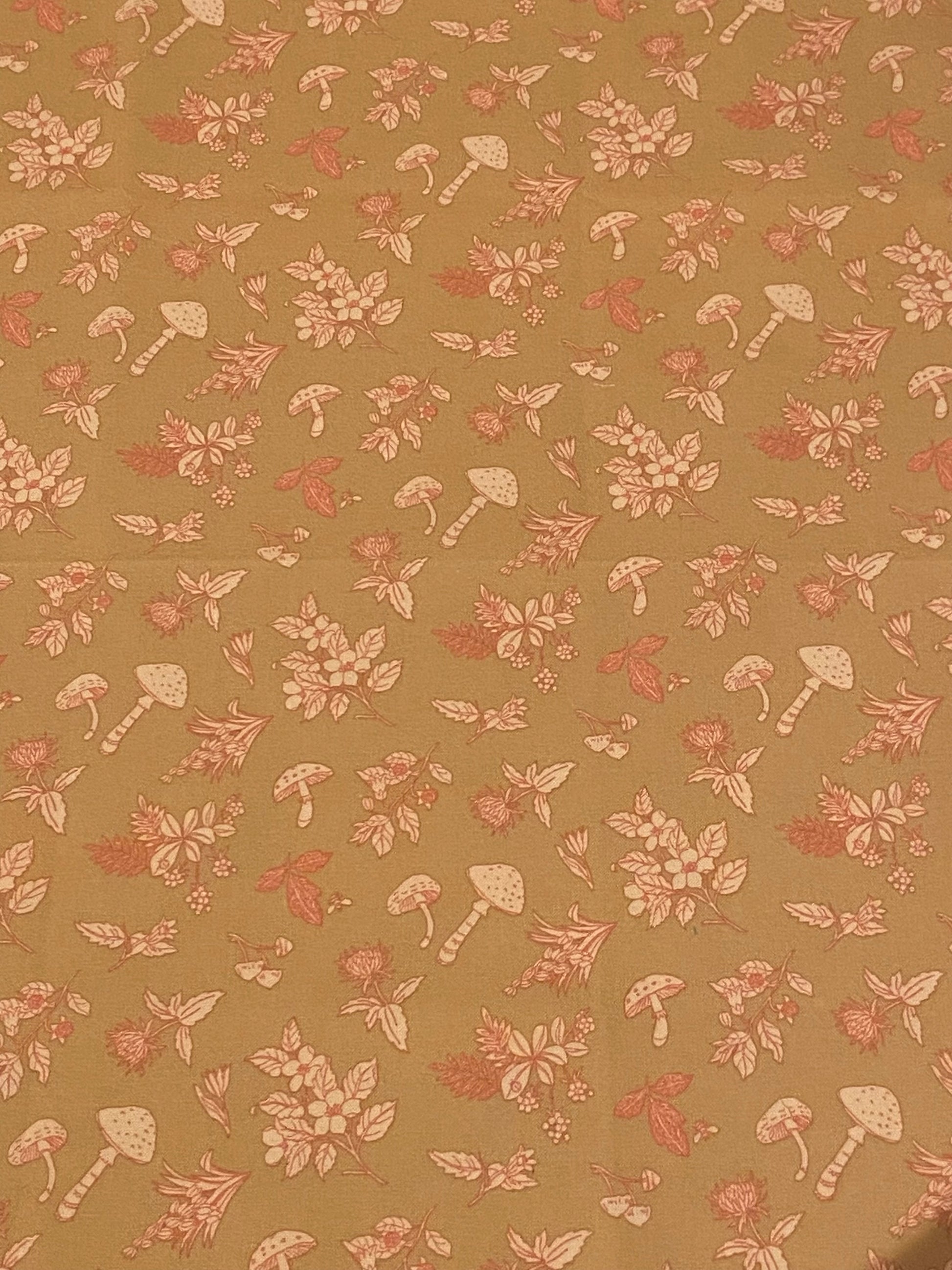 Tan Mushroom Print Fabric - Fat Quarter
